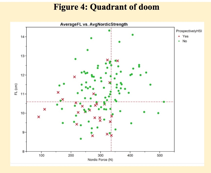(33). Those in this so-called ‘quadrant of doom’ are 39% more likely to suffer an injury compared with the ‘long and strong’ quadrant where there is a 4% chance (