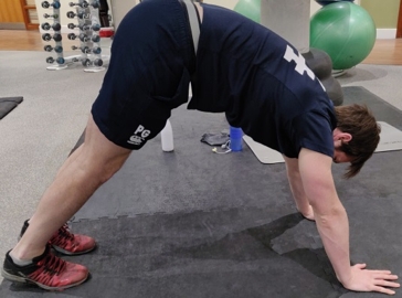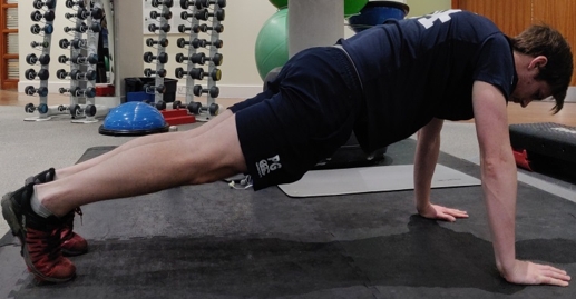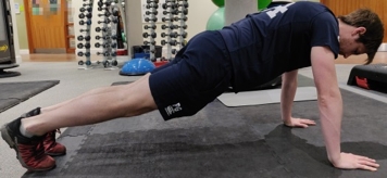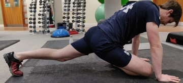 This is an anti-flexion trunk exercise with external rotation of the hips whilst using upper and lower body stabilisation. Hold each leg for a second then change. Continue for 2 minutes.