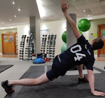 This is another anti-rotation exercise with hip abduction activation. Perform continuously for 2 minutes each side.