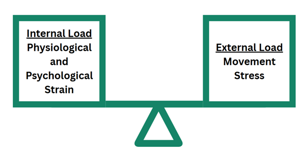 This means that training programs that only prescribe the exercise volume are not specific enough. The choice of exercise stimulus (type of exercise prescribed) must be directly related to the physiological response required for the athlete’s recovery. This is what Impellizzeri and colleagues refer to as a causal relationship – the training plan must be linked to known and predictable physiological response(1). This highlights the importance of planning both external load (the type, volume, and intensity of exercise) and internal load (how an athlete physiologically and psychologically responds to the training)(see figure 1).