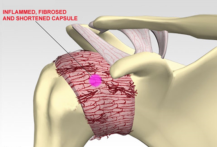 Histological evidence from patients with AC suggests a fibro-proliferative mechanism for the condition(1). At the same time, on the macro-scale, there is thickening and contracture of the anterior capsule - especially the coracohumeral ligament and the middle glenohumeral ligament – leading to reduced glenohumeral joint volume, and shoulder ROM (particularly external rotation in neutral and mid-elevation)(2). Other studies have suggested a link between AC risk and some metabolic conditions, such as diabetes and raised blood lipids(3,4).