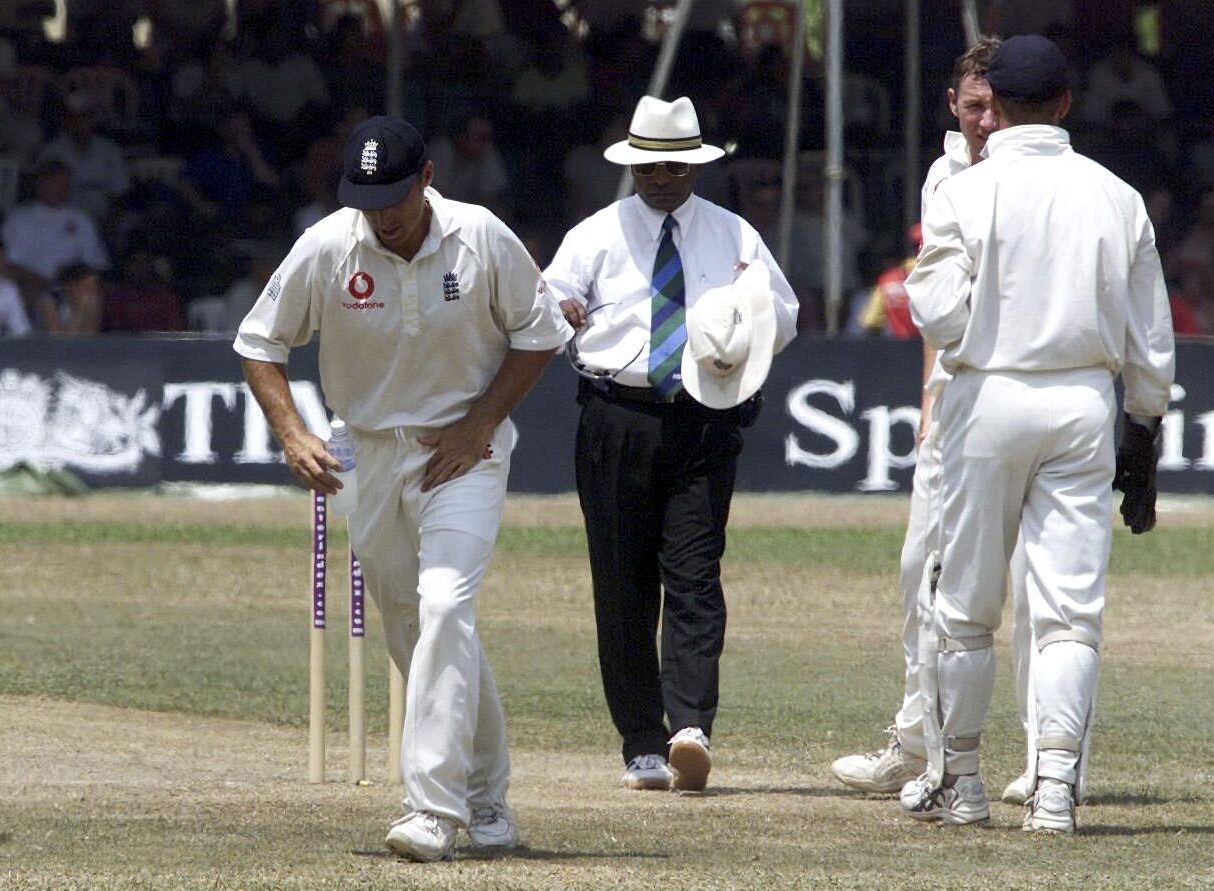 2001 England's Nassar Hussain leaves the field with a groin strain. Credit:Action Images/Andrew Budd Digital Nasser Hussain