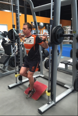 Before being able to jog, the athlete must be pain-free walking on stairs and be able to perform the following program AND have a pain score of less than 4 out of 10 pain post-session/next morning when performing an SL decline squat: