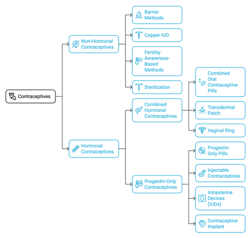 Clinicians broadly categorize contraceptive methods into non-hormonal (NHC) and hormonal (HC) options (see figure 1), each with distinct advantages and disadvantages for physically active females (see table 1).