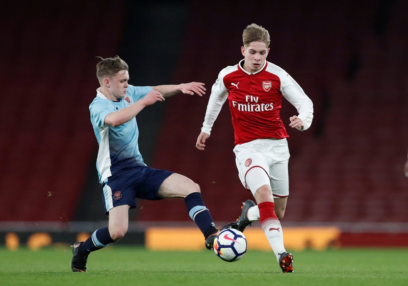 FA Youth Cup 2018 Arsenal's Emile Smith Rowe in action with Blackpool's Finlay Sinclair Smith Action Images/Matthew Childs