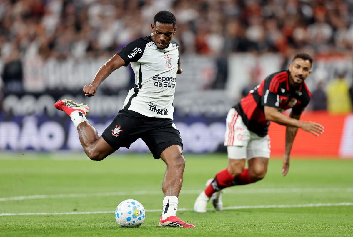 Brasileiro Championship - Corinthians v Flamengo - Neo Quimica Arena, Sao Paulo, Brazil - Corinthians’ Andre shoots at goal REUTERS/Jorge Silva
