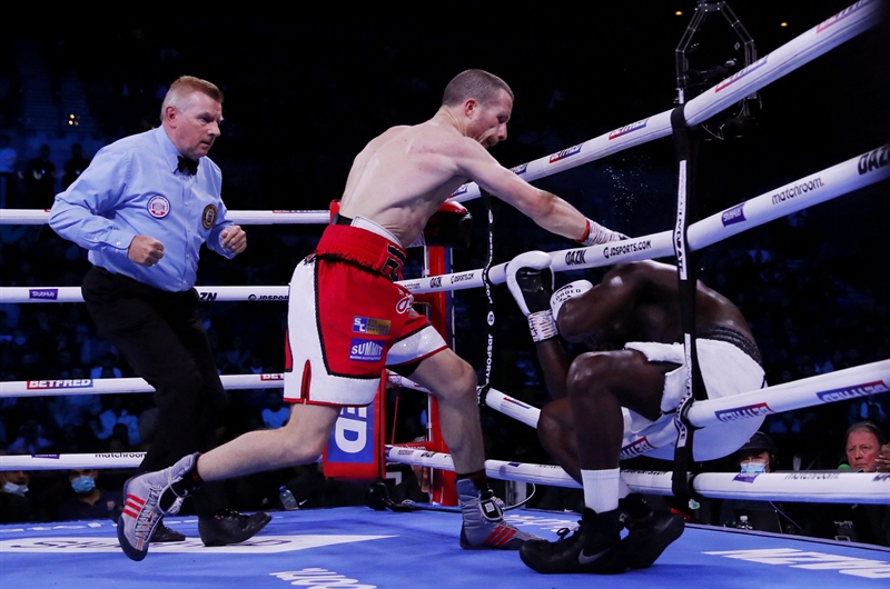 Robbie Davies Jr v Henry Lundy - Echo Arena, Henry Lundy is knocked down by Robbie Davies Jr Action Images via Reuters/Andrew Couldridge