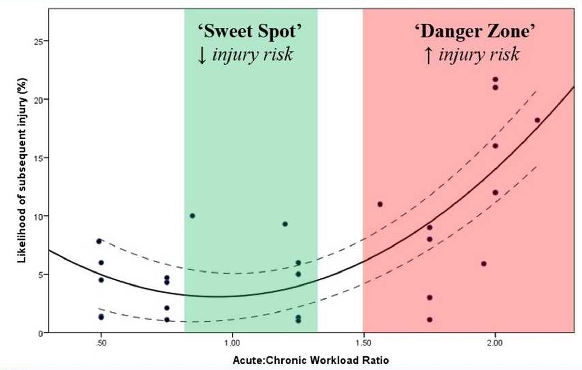 Figure 2 Acute-chronic workload ratio – the risk of injury relating to ACWR