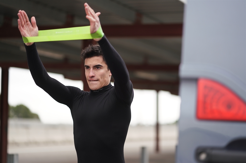 MotoGP champion Márquez at first track test of his shoulder after he underwent an operation in December 2018.