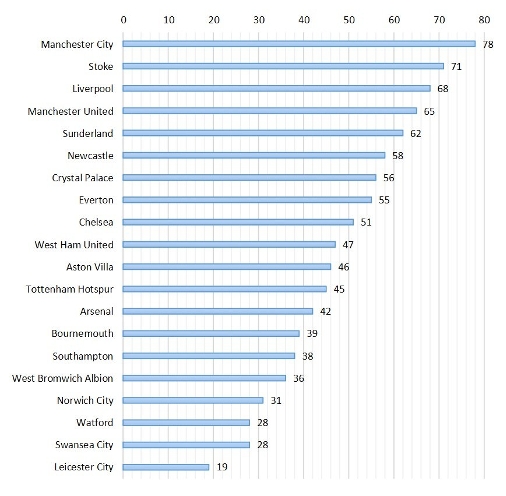 Figure 2: Number of injuries per English Premier League team during the 2015/2016 season*