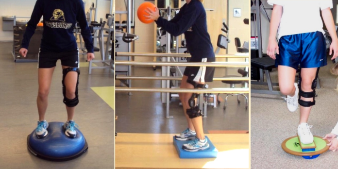 To return to sport, athletes need proprioceptive neuromuscular training, especially without an ACL. Manipulate variables of base of support, visual input, and single or double limb stance, progressing difficulty and incorporating sports specific tasks as tolerated.