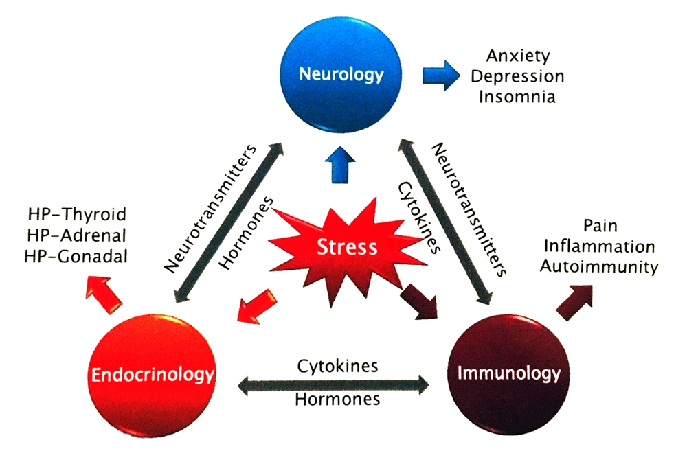 The body’s ability to function is maintained through a complex dynamic equilibrium referred to as ‘homeostasis’. Internal or external stresses influence homeostasis resulting in emotional or physical consequences (see figure 1)(1). A stressful stimulus for example may be chronic pain itself, a forthcoming event, or personal issues related to relationship, financial or employment factors, to name but a few. Student athletes have the added burden of educational performance.
