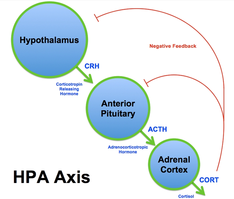 The HPA axis is a complex set of direct influences and feedback interactions between three glands: the hypothalamus, the pituitary and the adrenal glands.